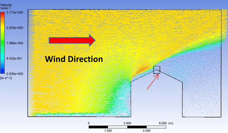 To evaluate the performance of ridge vents, a Computational Fluid Dynamics (CFD) analysis was conducted under the following boundary conditions:
